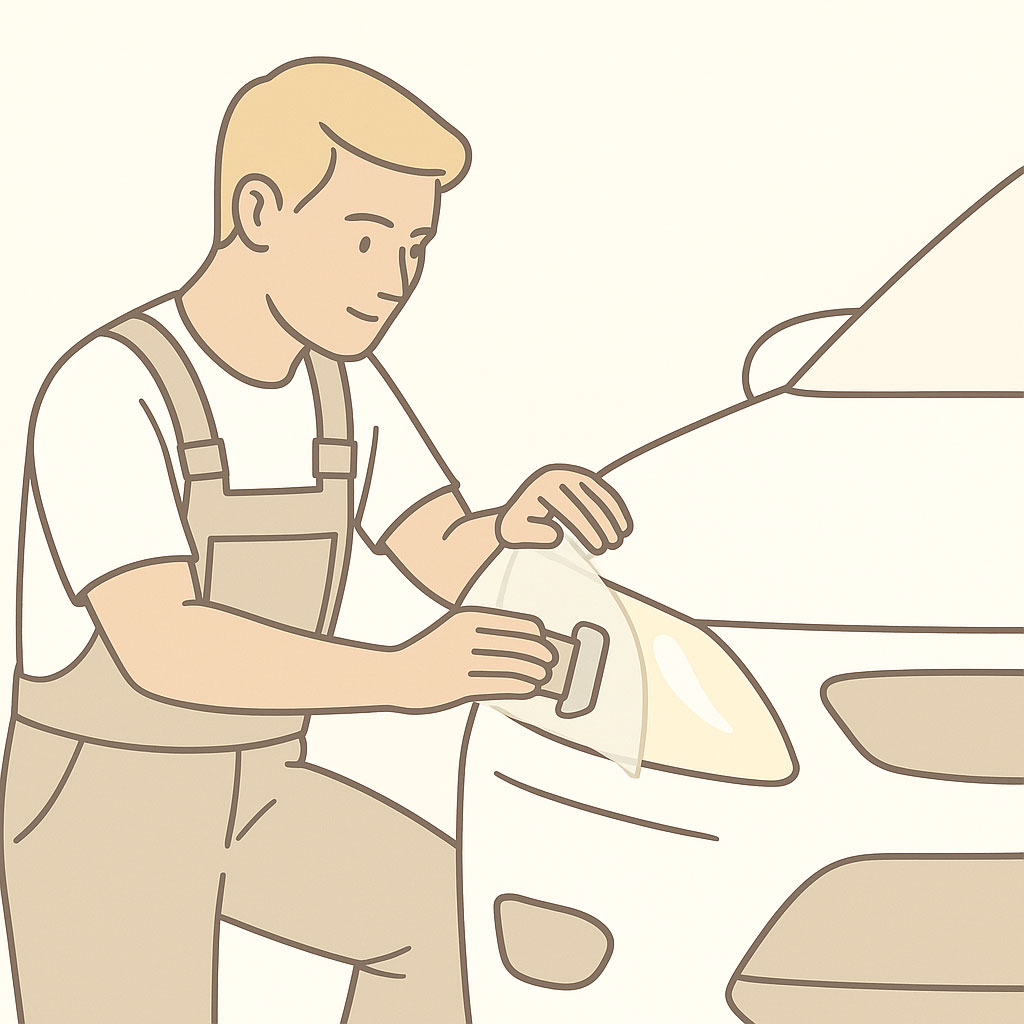 Transparente Scheinwerfer-Schutzfolie mit integriertem Steinschlagschutz – Schutz vor Steinschlägen, Kratzern und UV-Vergilbung. Ideal für neue oder frisch polierte Scheinwerfer. Mobiler Service vor Ort.